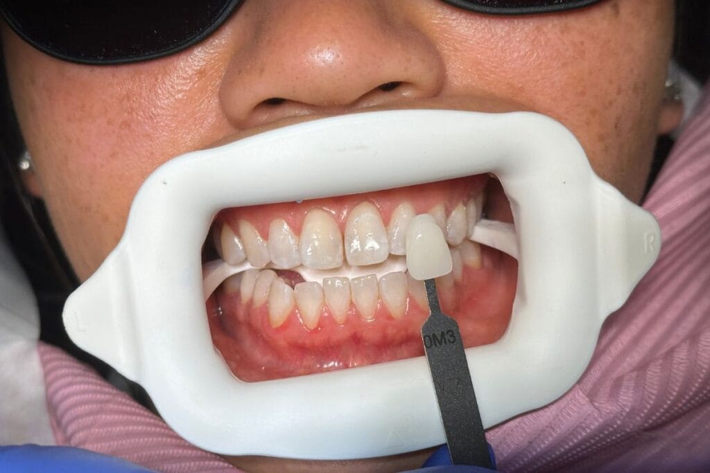 Your In-Chair whitening experience begins with a pre-whitening assessment conducted by our Oral Health Therapist. We’ll start by taking a pre-treatment photo to capture your ‘before’ smile, followed by a shade guide assessment to record the starting colour of your teeth. Your teeth will then be polished to prepare them for the whitening process.