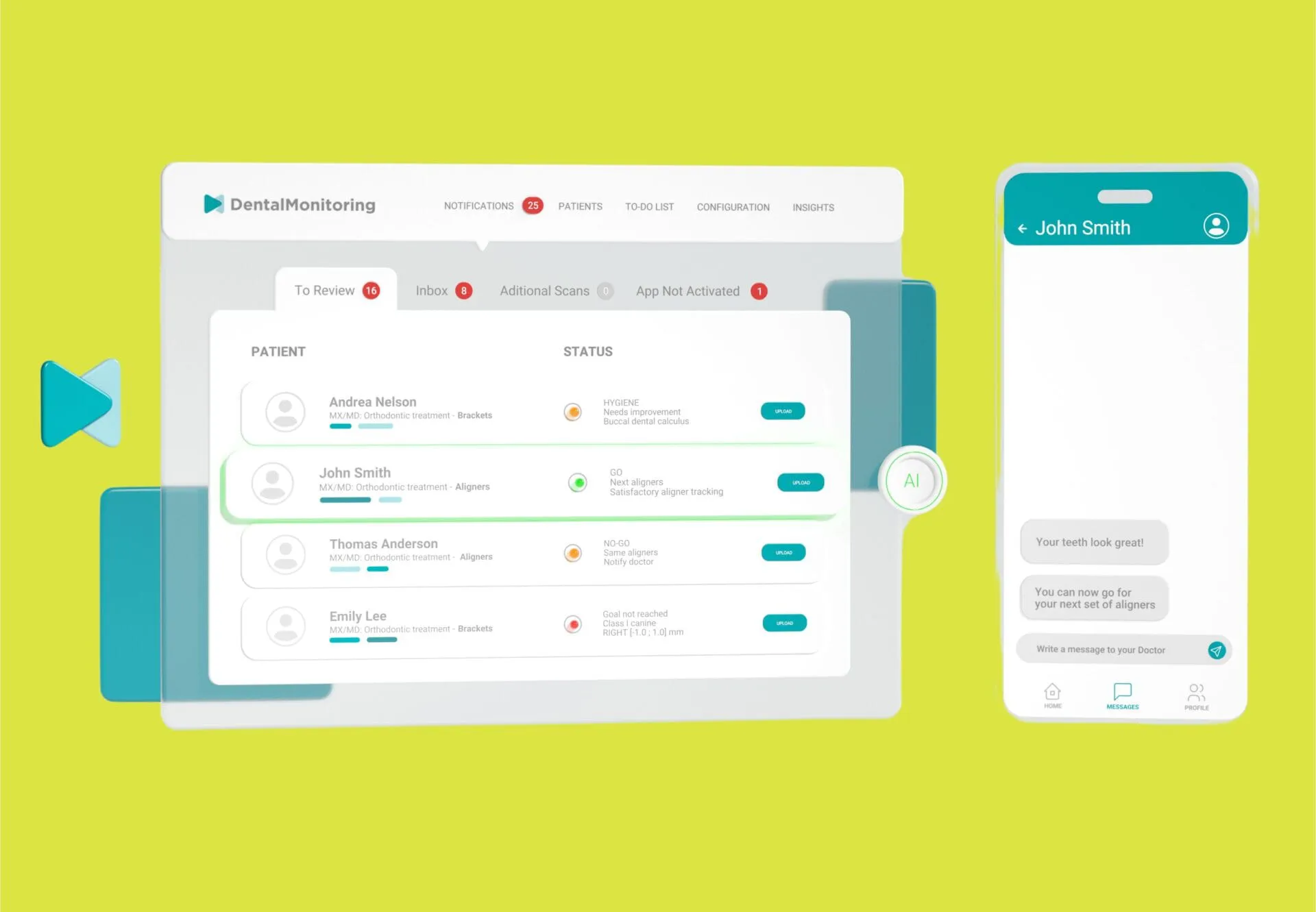Chat directly with our clinical team using the Dental Monitoring app to get updates on your progress and ask any questions you may have during treatment.